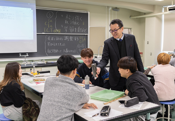 地域の小学校と連携し、1年次から4年間を通して小学校の現場で学べる機会が充実しています。現場で得た気づきや経験はゼミで共有して学び合い、知識と体験を段階的に積み重ねて実践力を磨くことができます。また、学科独自のサポートセンターで教員採用試験対策講座を無料で受講でき、個別サポートも充実しています。小学校教員一種免許状を取得するには、所定の単位を取得し、3〜4週間の教育実習に取り組むことが必要です。