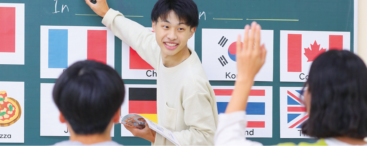 「高等学校教諭一種免許状(英語)」取得をめざすなら、英語教育に特化した「小中英語教育コース」のカリキュラムで学ぶのがおすすめです。海外で学べる機会も設けており、語学力や国際感覚を磨くことができます。「小学校教諭一種免許状」や「中学校教諭一種免許状(英語)」の取得もめざすことができます。合わせて取得することで、小中一貫教育、中高一貫教育に対応でき、将来の活躍の場が広がります。