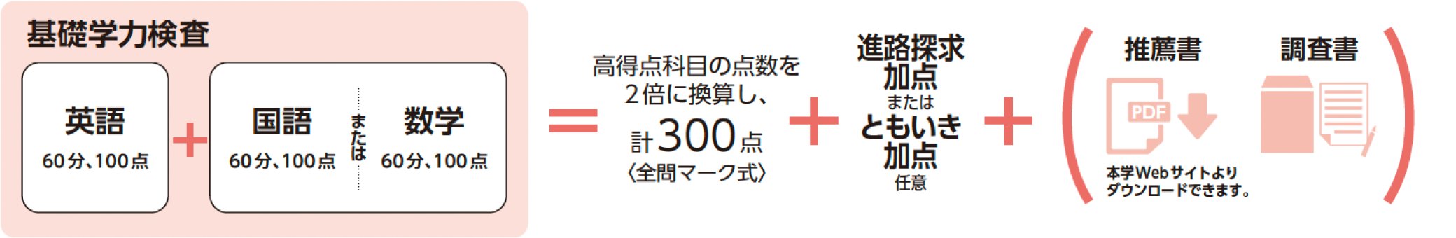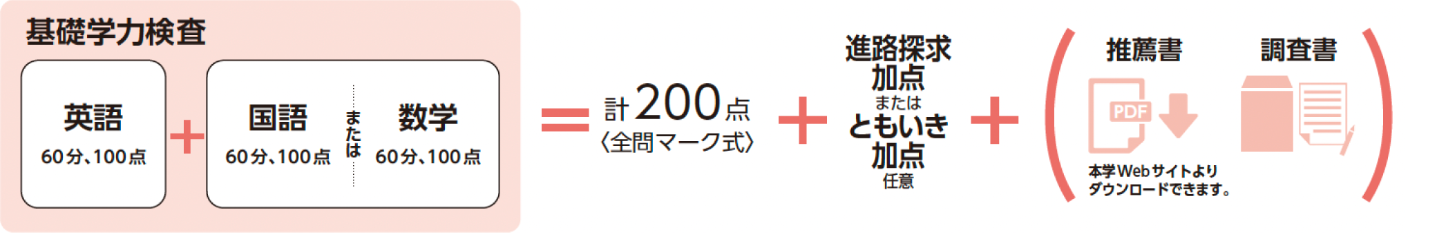 ※同日程で実施する「総合型選抜 まなび体験方式」「通信学習経験者推薦」「多文化共生社会推薦」は入試要項(Web)をご確認ください。