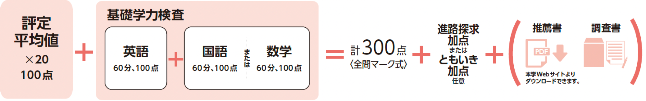 高校の評定平均値を点数化できるので、高校の成績を活かしたい人にピッタリ!