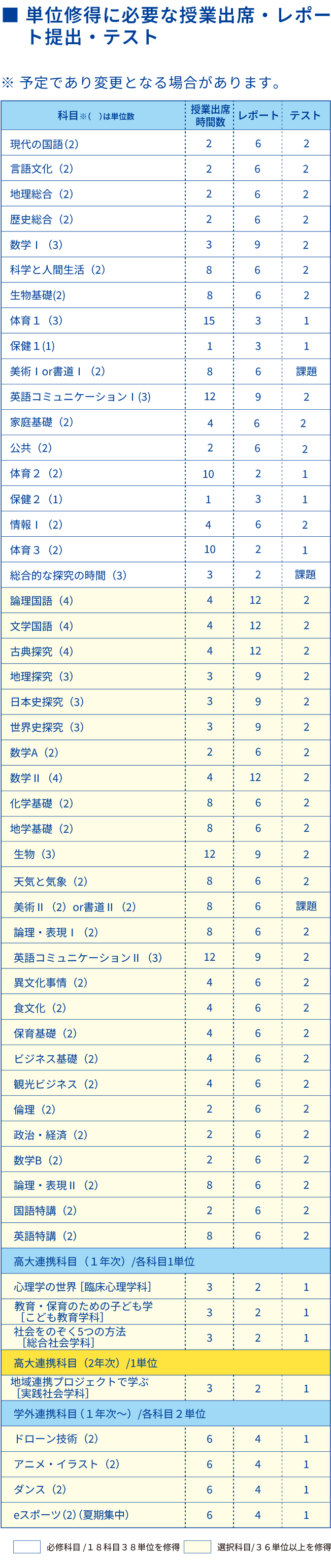 レポートやテストの指導は「教科スクーリング」の授業で。
