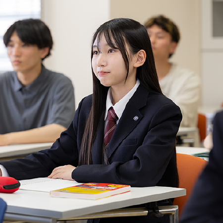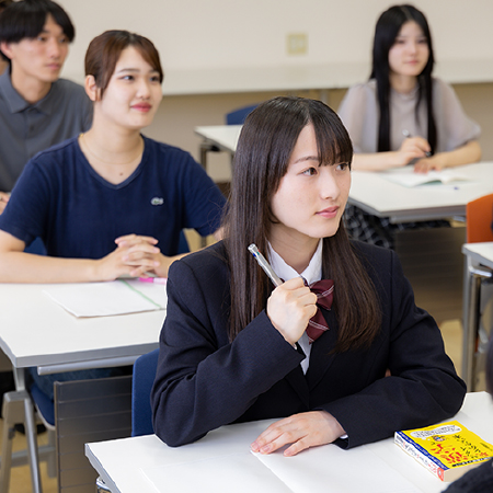 「学外連携科目」や「高大連携科目」で各分野の専門家や大学の先生の話を聞いたり、キャンパスで大学生とふれあうことで将来の進路や大学進学への興味が生まれることも。地域での探究学習やイベントなどに参加する中で新しい「気づき」を得る機会もあります。
