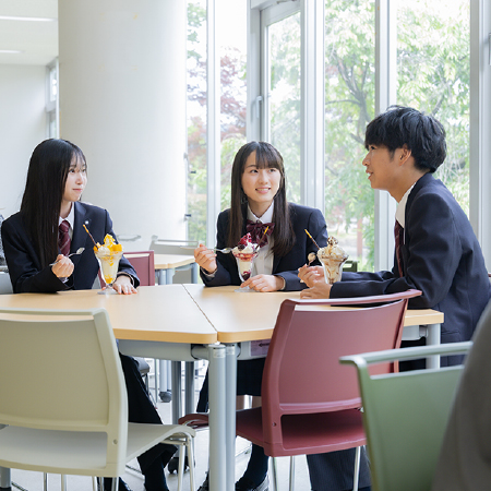 広々としたキャンパスでは、仲間と一緒に過ごすことも一人でのんびりすることも自由。人間関係でも無理をせずに自分らしい高校生活を送ってください。高校の仲間だけでなく、大学生や地域の人たちとも親しくなれるチャンスがたくさんあります。